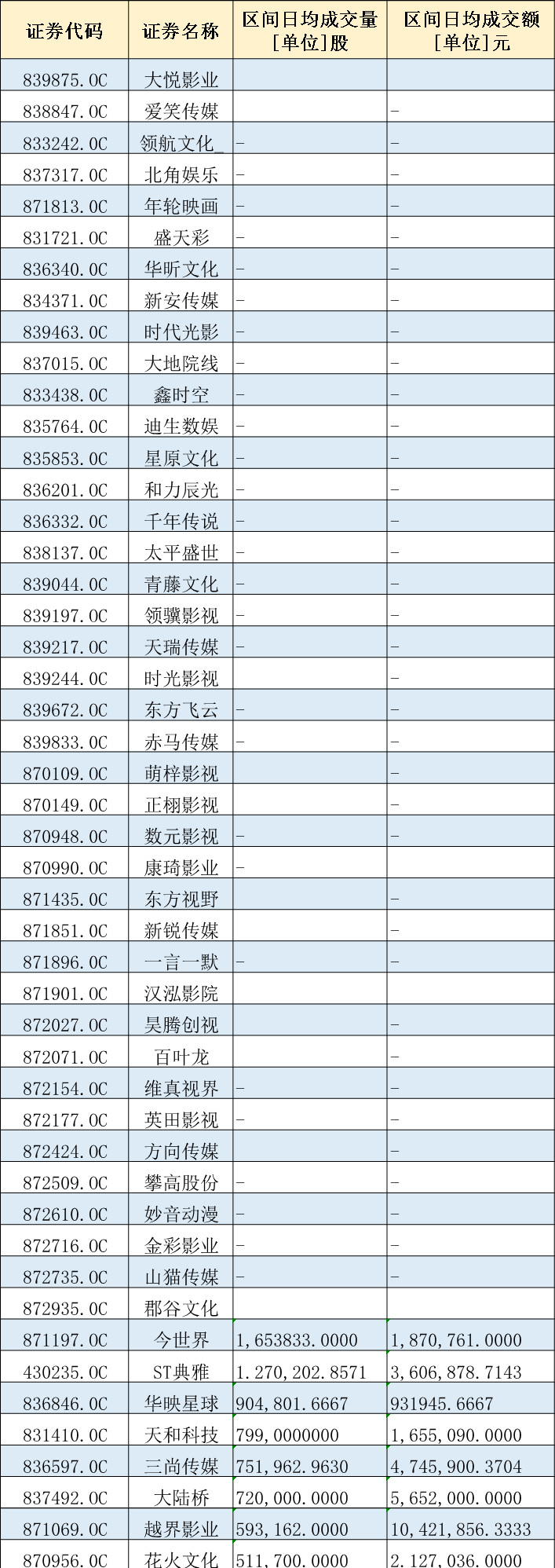 123只新三板影視股票中,40只股票從掛牌到現(xiàn)在,一股成交都沒(méi)有,成交額為零。
