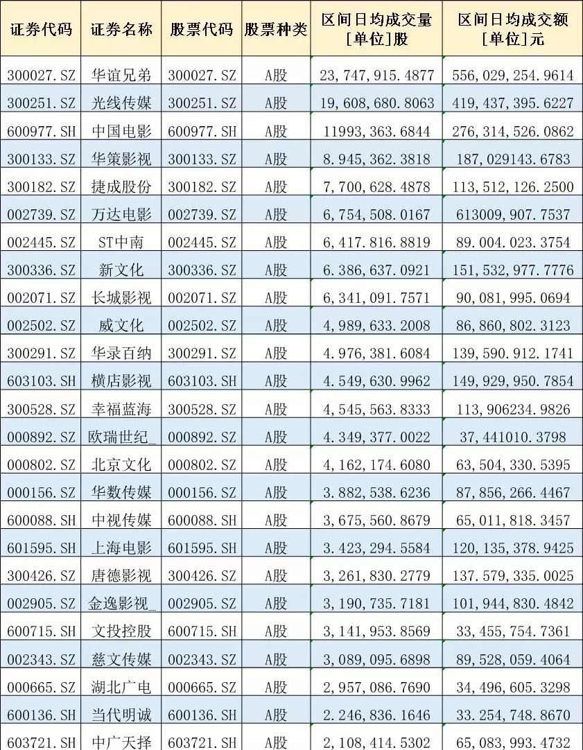 25只A股影視股票,則每天都有成交,平均一天成交最低的中廣天擇也有210萬(wàn)股成交量和6508萬(wàn)成交額,超過(guò)了成交額最高的森宇文化;成交高的華誼兄弟,平均一天成交2374股,金額是5.5602億,是森宇文化的18倍,零頭都是森宇文化成交額的兩倍多。