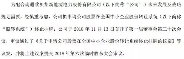 歐貝黎11月13日公告,公司已經(jīng)計劃申請終止掛牌新三板。